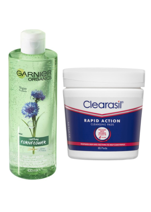 In many instances, a simple swipe with a makeup remover will do the trick; where possible, do this before the stain sets. You can just use your regular makeup remover (such as Garnier Organics Soothing Cornflower Micellar Water), or some specifically designed cleansing pads like the Clearasil Rapid Action Cleansing Pads.