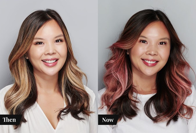 Available in seven shades that range from vibrant jewel hues to subtle pastel tones (there’s Hypnotic Magenta, Pink Sorbet, Sunset Coral, Electric Purple, Navy Blue, Caribbean Blue and Iced Mint to choose from), this service allows you to pick a colour that is as punchy or soft as you want it to be. Seven shades might not sound like a lot, but these shades can actually be mixed together to create thousands of results. As for what I opted for: I went with a medium pink shade (Pink Sorbet) that was mixed with a blue-based pink (Hypnotic Magenta), and my inspiration was Dannii Minogue, who I had the pleasure of meeting with earlier this year when she was trying out a pink hair colour.